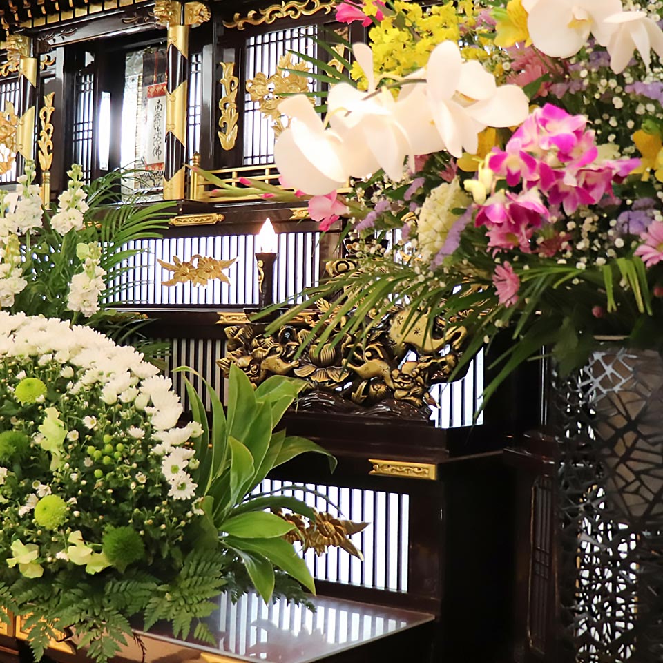 日華祭場には、少人数から大人数まで幅広く対応できる葬儀式場をご用意しています。