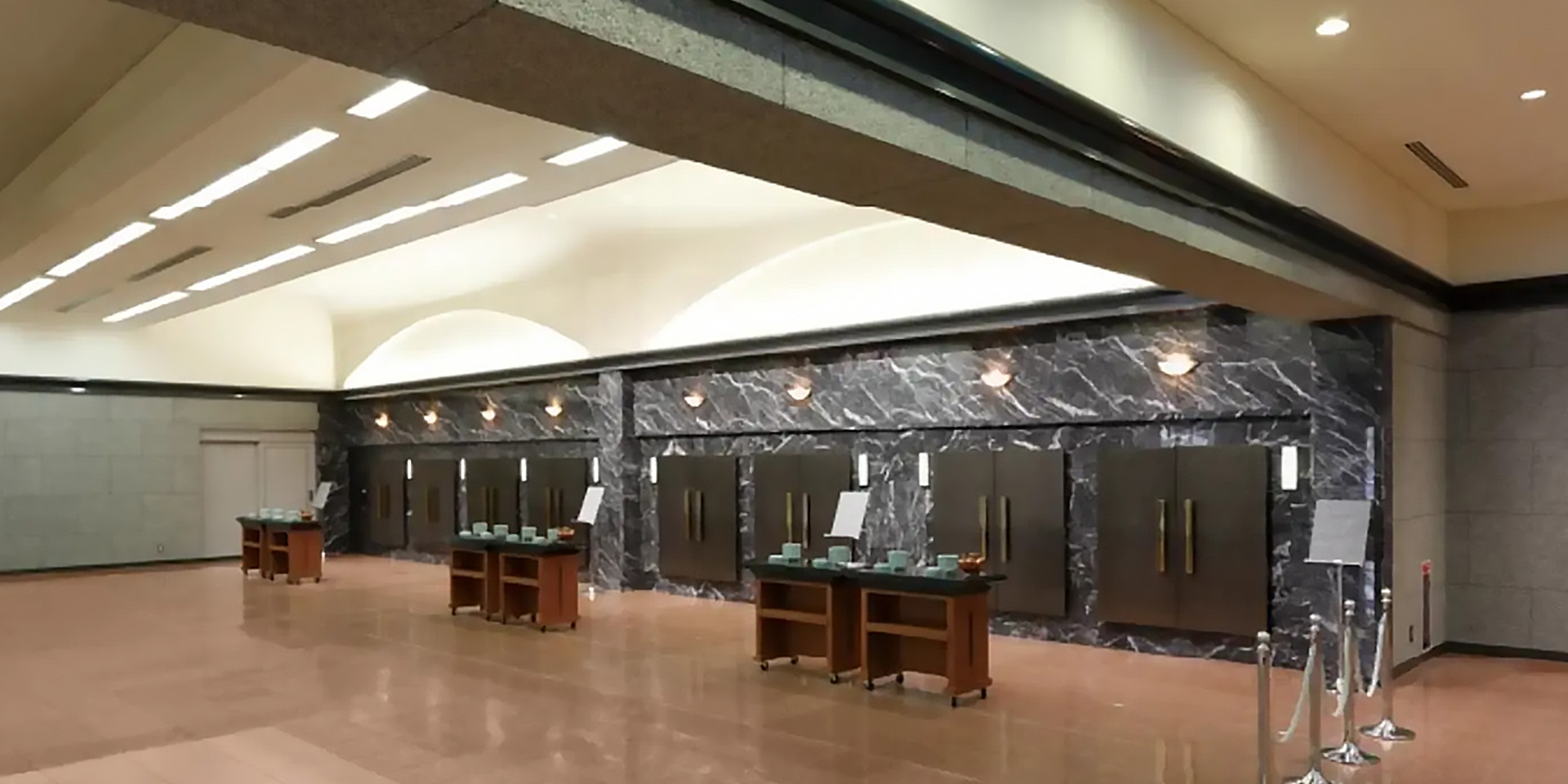 日華祭場には、少人数から大人数まで幅広く対応できる葬儀式場をご用意しています。